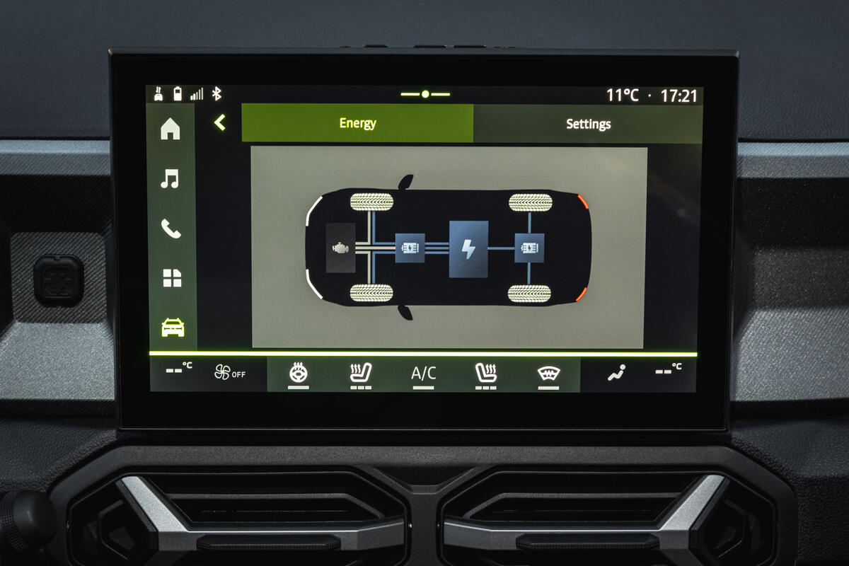 Da der Elektromotor mit den Hinterrädern verbunden ist und die 48-V-Lithium-Ionen-Batterie mit 0,84 kWh beim Bremsen und Verzögern aufgeladen wird, kann das Fahrzeug häufig im rein elektrischen Modus betrieben werden. Im Stadtverkehr können der Duster und der Bigster Hybrid 150 4x4 bis zu 60 Prozent der Fahrzeit im rein elektrischen Modus bleiben.
