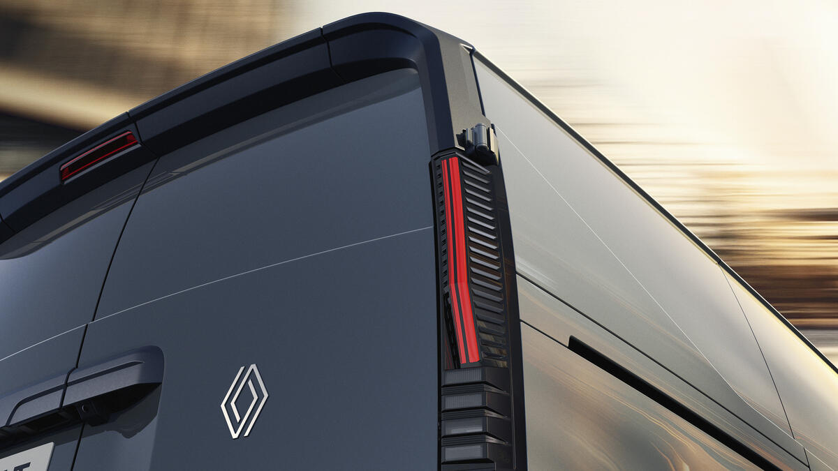 Der Trafic ist auch der erste Renault Transporter mit einer Lichtsignatur am Heck. Sie ist dreidimensional geformt und besteht aus einer doppelten vertikalen Linie zu beiden Seiten der asymmetrischen Flügeltüren. Die konventionellen Beleuchtungsfunktionen sind in einem einzigen Block untergebracht, der sich ebenfalls ausgeformt unter der Lichtsignatur befindet.