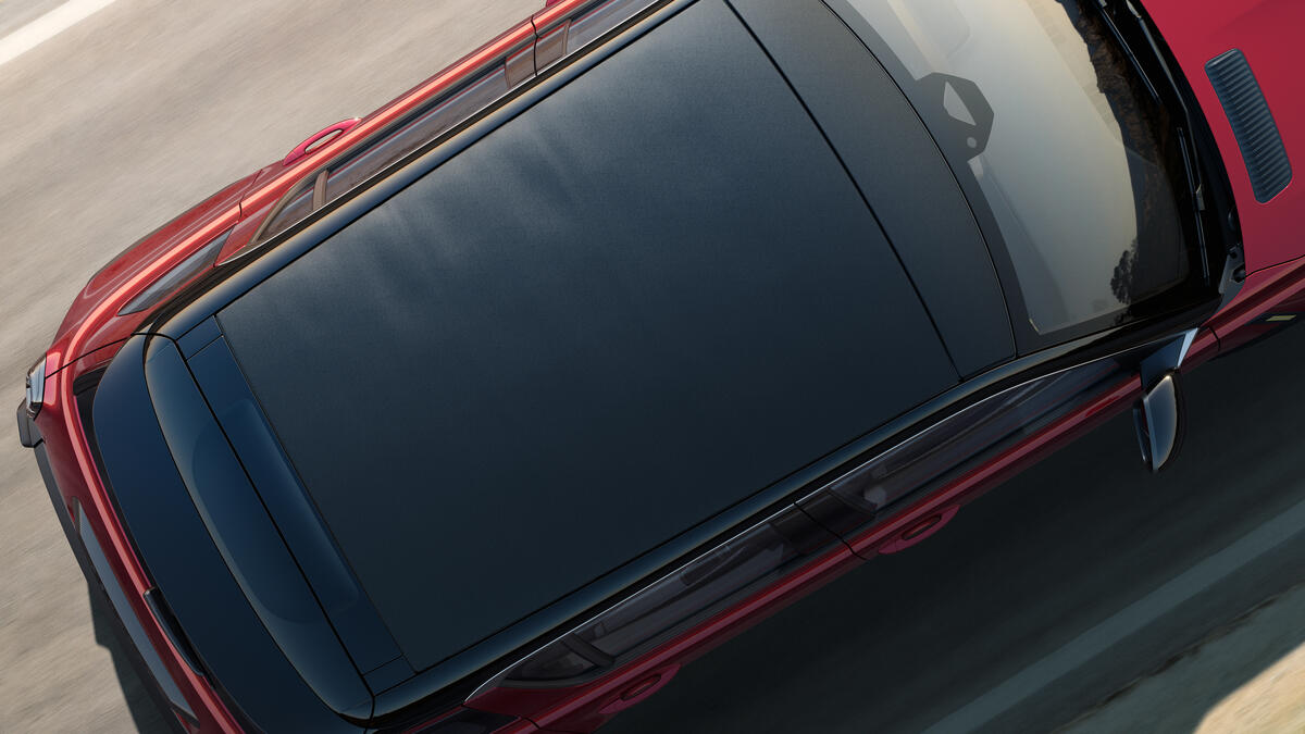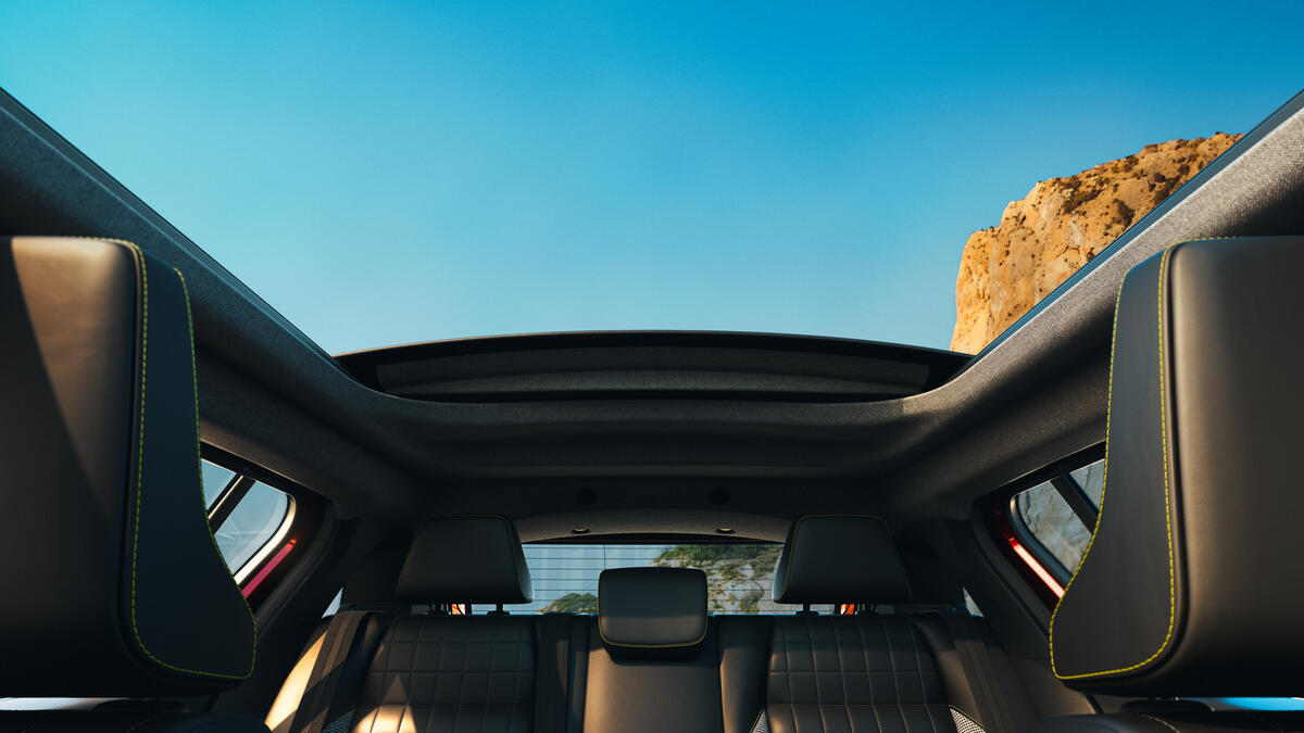 S’ouvrant électriquement sur 92 centimètres de longueur et 80 centimètres de largeur, ce toit en toile permet aussi bien aux passagers avant qu’aux passagers arrière de voyager dans un esprit « plein air », cheveux au vent et l’habitacle baigné de lumière.